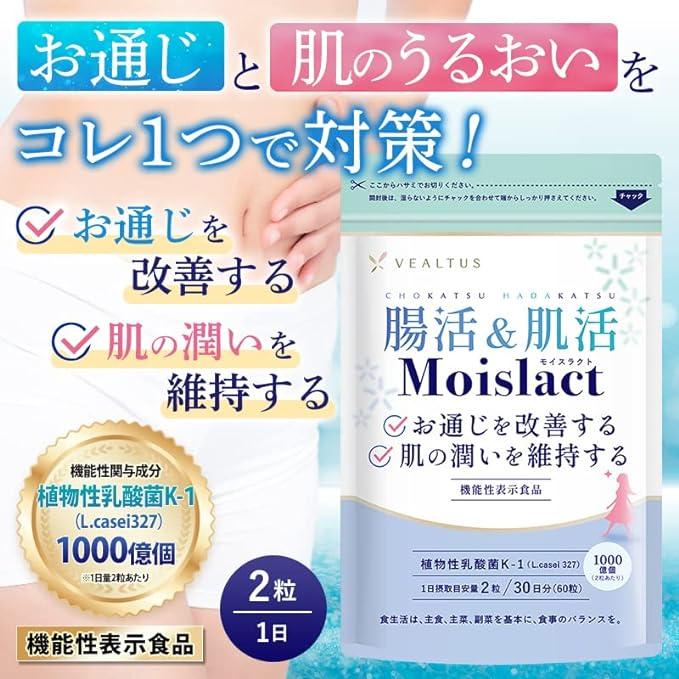 腸活&肌活 モイスラクト 乳酸菌 サプリ お通じを改善 肌の潤いを維持 機能性表示食品 サプリメント コラーゲン ハトムギ 難消化性デキストリン イヌリン オリゴ糖 30日分