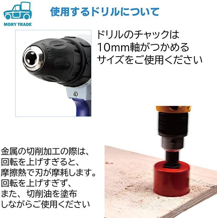 大口径ですので、安全のためクラッチ機構の付いたドリルをご使用ください。