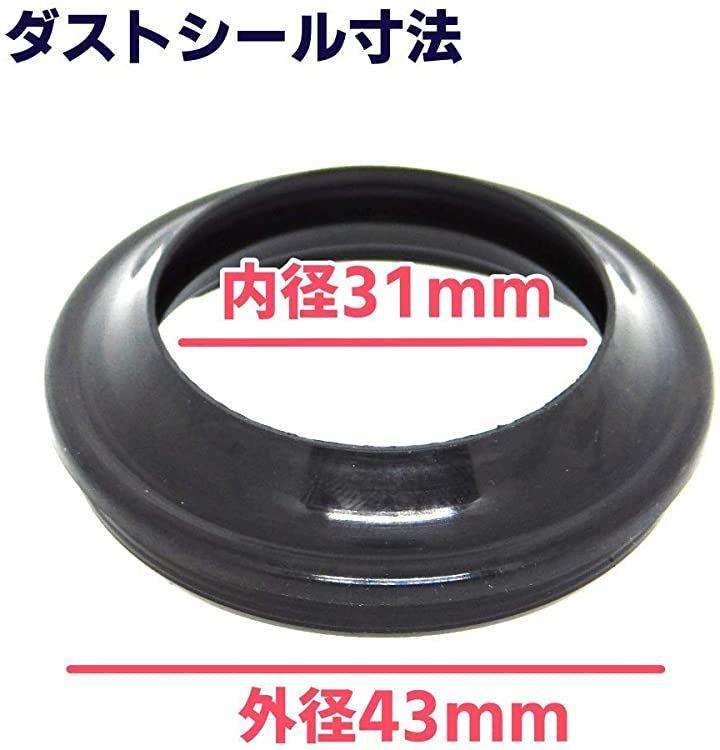 ・オイルシール寸法:31x43x10.5mm(内径x外径x高さ)、ダストシール:31x43mm(内径x外径) 各2個 合計4個 インナーチューブサイズ:31Φ専用 型式、年式等で異なる場合がございますので、寸法、形状をご確認の上ご購入ください。