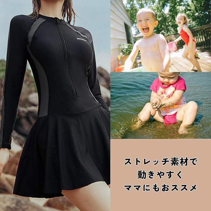 そんなママたちの声から生まれた、長袖ワンピース型ラッシュガード水着です。