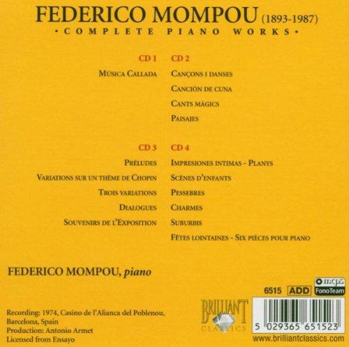 通常1-5営業日で発送:Musica callada, Can?ons i danses, Canci?n de Cuna, Cants m?gics, Paisajes, Pr?ludes, Var. sur th?me de Chopin, 3 Variat., Dialogues, Souvenirs de l'Exposition, Impresiones intimas, Sc?nes d'enfants, Charmes, Pessebres... / Federico Mompou, piano