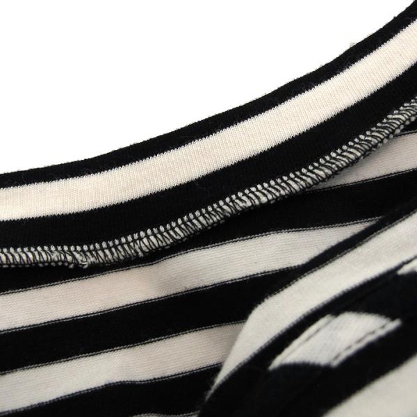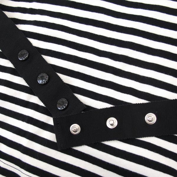 モンクレールからボーダーのカットソーが入荷しました。ブラックのベルトは後ろがゴムになっていて取り外し不可ですが、ウエストサイズはスナップで調整可能になります。衿の内側や右袖口に汚れと起毛があります。ステッチ不良は縫製上のものになります。糸の毛羽立ちなど全体的に着用感が強めにでています。どうぞお気軽にお問い合わせくださいませ。