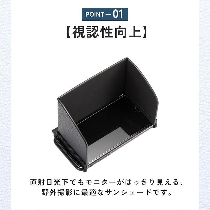 「視認性向上」直射日光下でもモニターがはっきり見える、野外撮影に最適なサンシェードです。