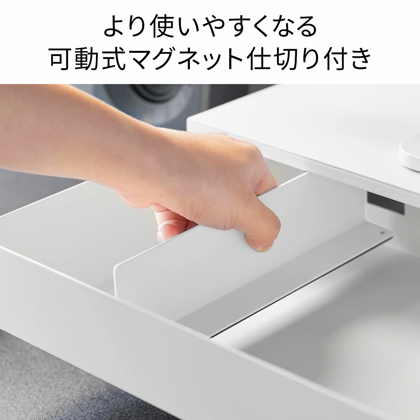 ■素材本体・引き出し・仕切り:スチール(粉体塗装)マグネットレール部分:ポリプロピレンクッション:シリコーンゴム緩衝材:ポリエステル