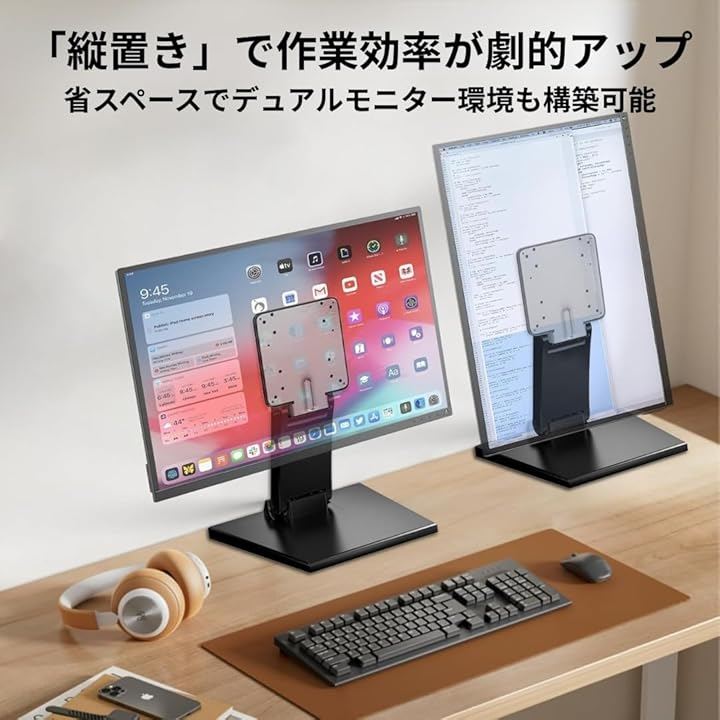 また、13~17インチ等の「VESA対応モバイルモニター」をデスクトップ化するスタンドとしても最適です。