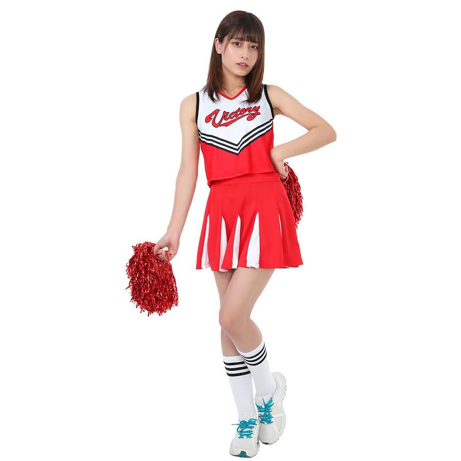 ?【 ロゴが可愛いチアコスチューム 】シャツ・スカートにポンポンまでついたお得なセットだから、すぐに元気いっぱいのチアガールが完成します!?【 上質な生地を採用 】上質な生地を使用しており、高級感があります。質感、細部にまでこだわった、クオリティーの高い本格的な衣装です。?【 本格的なつくり 】縫製など細部まで丁寧に作られております。特に素材の質感が高くリアルなコスプレができます。?【 鮮やかカラー 】爽やかなカラーの組み合わせで、動くたび綺麗に広がるプリーツラインがとってもキュートです♪?【 イベントに大活躍 】ハロウィン、ダンスイベントの衣装にオススメです。メンバーを集めて一体感の出るチアコスで盛り上がりましょう♪