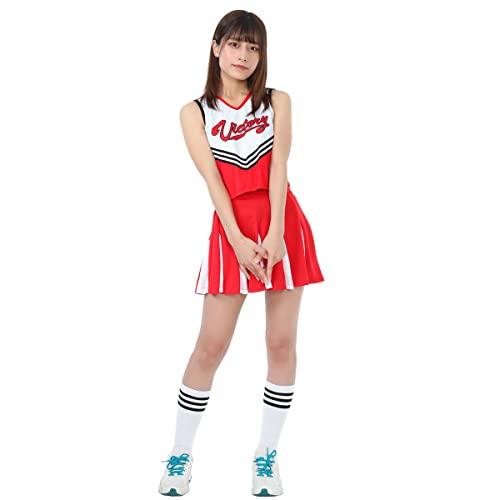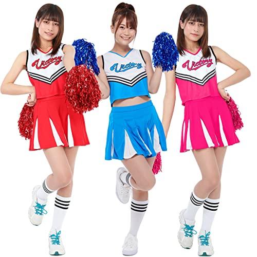 ?【 ロゴが可愛いチアコスチューム 】シャツ・スカートにポンポンまでついたお得なセットだから、すぐに元気いっぱいのチアガールが完成します! ?【 上質な生地を採用 】上質な生地を使用しており、高級感があります。質感、細部にまでこだわった、クオリティーの高い本格的な衣装です。 ?【 本格的なつくり 】縫製など細部まで丁寧に作られております。特に素材の質感が高くリアルなコスプレができます。 ?【 鮮やかカラー 】爽やかなカラーの組み合わせで、動くたび綺麗に広がるプリーツラインがとってもキュートです♪ ?【 イベントに大活躍 】ハロウィン、ダンスイベントの衣装にオススメです。メンバーを集めて一体感の出るチアコスで盛り上がりましょう♪