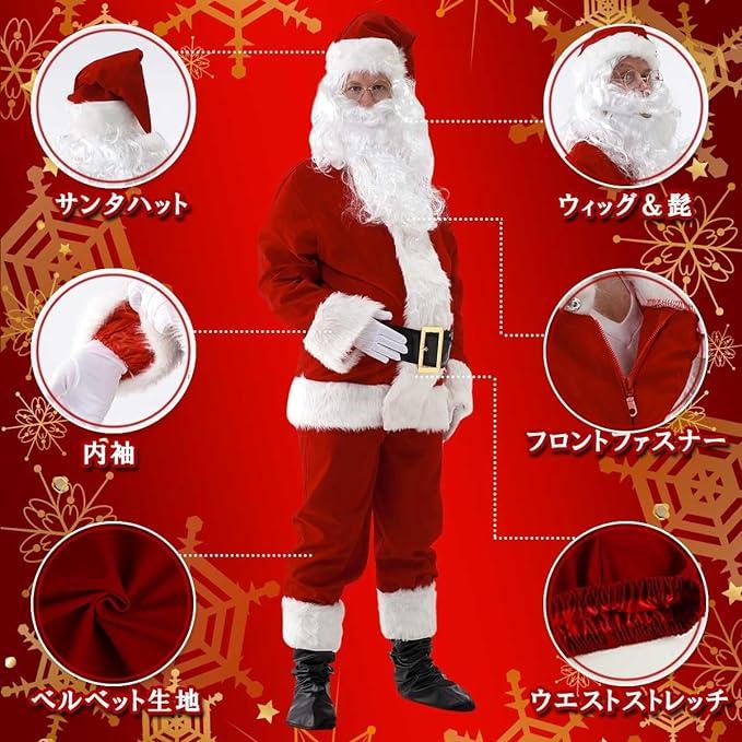 ■商品名[monoii] サンタ コスプレ 衣装 11点セット サンタコス サンタクロース 仮装 コスチューム メンズ a588