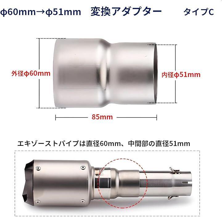 排気マフラーのパイプ(エキゾーストパイプ)とサイズが異なるサイレンサーを取り付けるための変換アダプターになります。