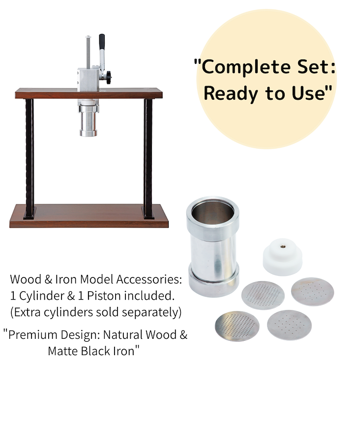 重厚感のある木枠モデルは、店舗の格調を高める洗練されたデザイン。お客様を魅了する「絞りたての演出」に、さらなる上質さを添えます。フレームの上段・下段には天然木を、サイドにはマットな質感の黒アイアンを採用しました。重厚感と温かみが共存する、インテリアの主役になれる一台です。