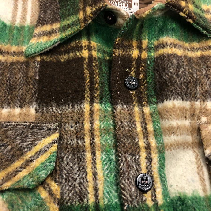 MONTGOMERY WARD Check Pattern Thick Flannel Shirt Brown Hong KongMade in mens Long sleeve shirt wool 02w12980