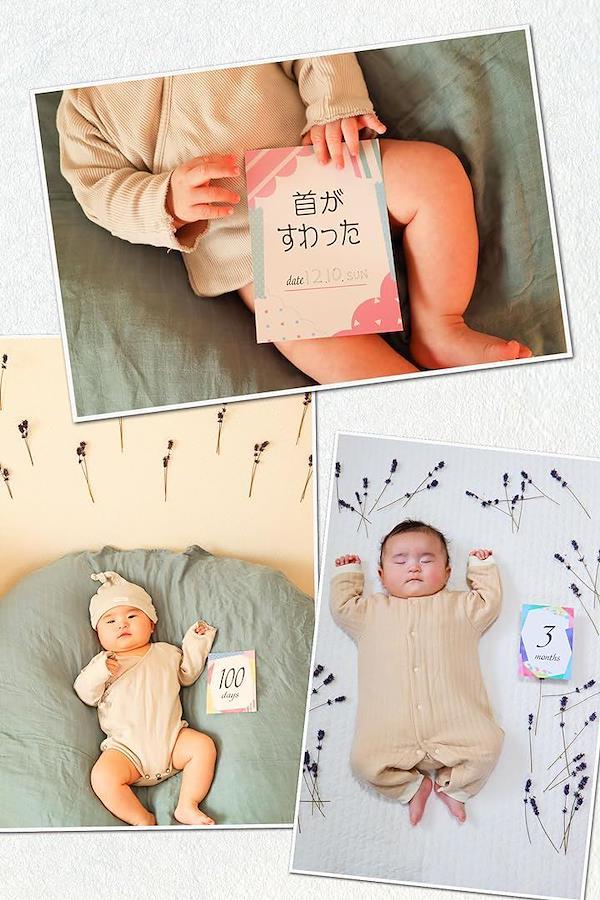 ただ赤ちゃん撮るだけじゃ、毎日の何気ない写真と同じになってしまいませんか? 毎月の記念日には、このカードと一緒に撮影して手軽に思い出の一枚を残しましょう。
