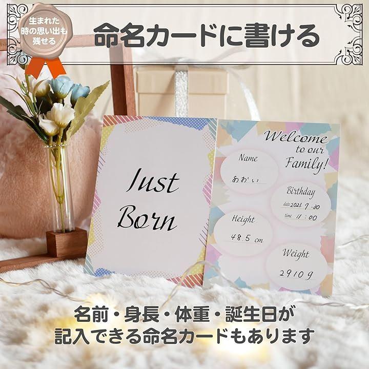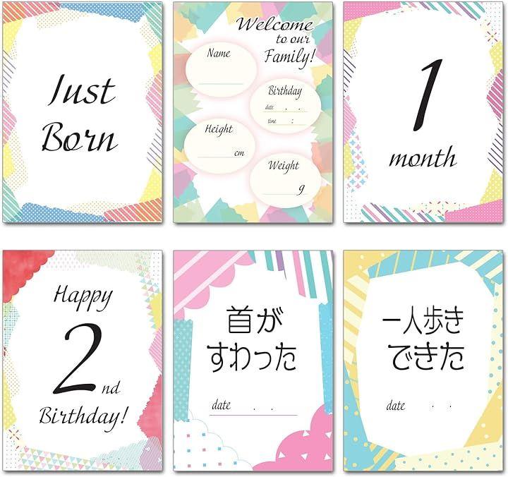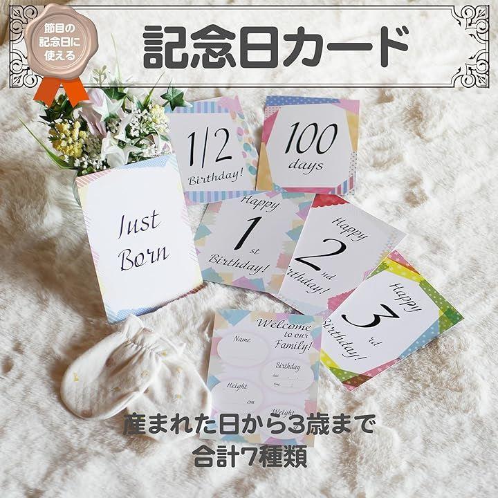 記念日カードは、「JUST BORN」「名前・誕生日・身長・体重」「HALF BIRTHDAY」「100DAYS」「1st Birthday」「2nd Birthday」「3rd Birthday」の7種類。