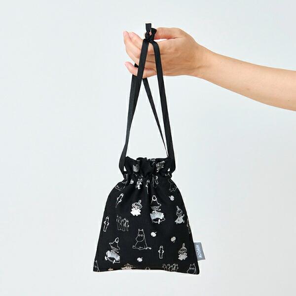 きらっと反射するメタリックシルバープリントが、クールでかわいいシリーズ。巾着は使い勝手のいいサイズ感でポーチとしても◎