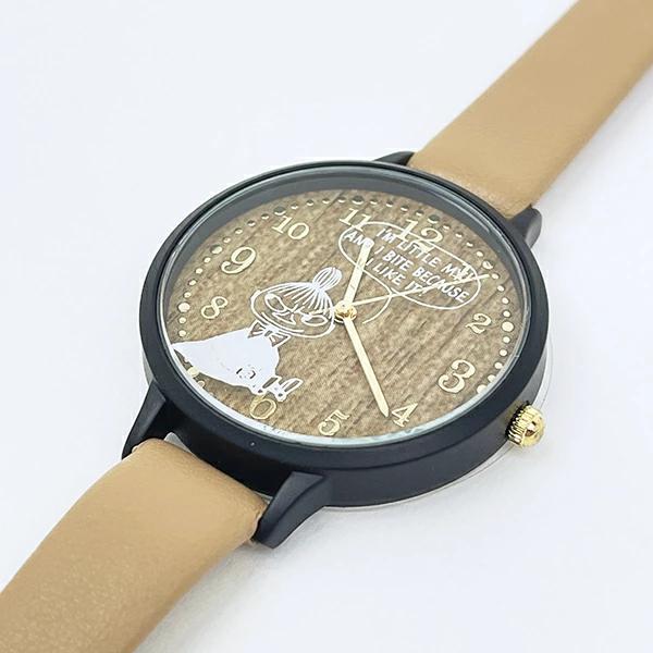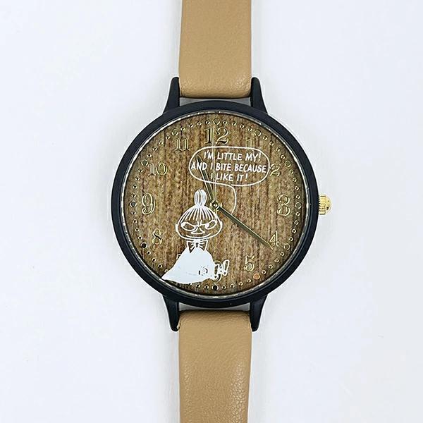 文字盤のウッド模様がポイント♪リトルミイのガラスプリントウォッチです。手元から楽しむおしゃれにぴったり◎大人っぽいデザインだからどんなシーンでも使いやすい♪プレゼントにも喜ばれること間違いなし!毎日をちょっと特別にしませんか?