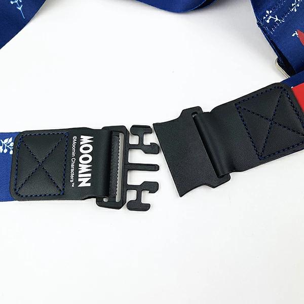 飛行機で預けた荷物がみんな同じような色や形で自分の荷物がわかりにくいことありませんか?そんな時に大活躍するリトルミイのスーツケースベルトです。スーツケースの目印としてはもちろん、スーツケースが気圧等の衝撃で突然開くのを防止したり、万が一旅行中にスーツケースの鍵やファスナーが壊れスーツケースを締められない時の応急処置としても使うことができます☆日本メーカーニフコの超薄型ワンタッチバックルを使用しているので、カチっと着脱簡単!スーツケースに合わせて長さ調節も可能です。可愛らしいデザインにも注目です♪【サイズ:約108-186cm×5cm】