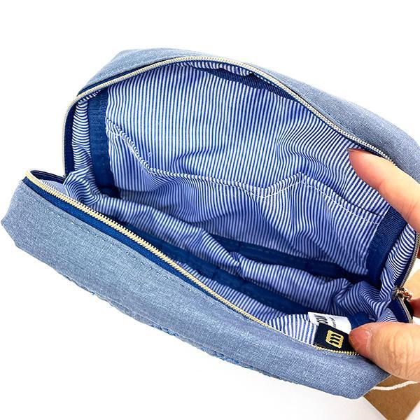 キルティング刺繍がおしゃれ。落ち着いたカラーで大人の女性にもオススメな繊細なデザインです。ポーチはサイズ感もちょうどよく、使い勝手も抜群です。