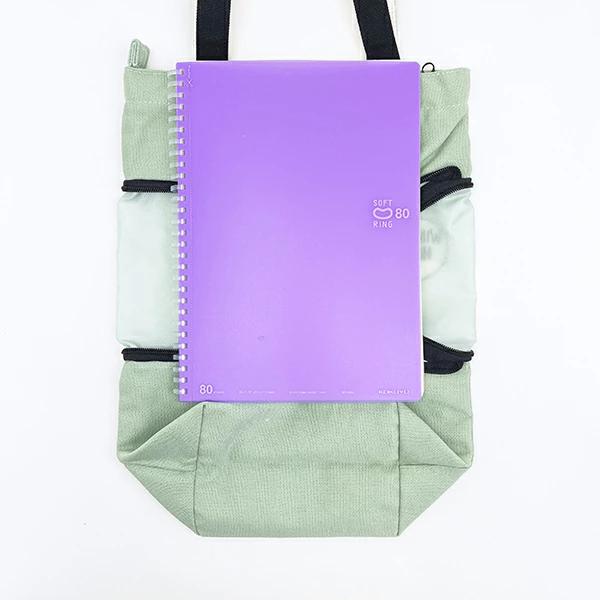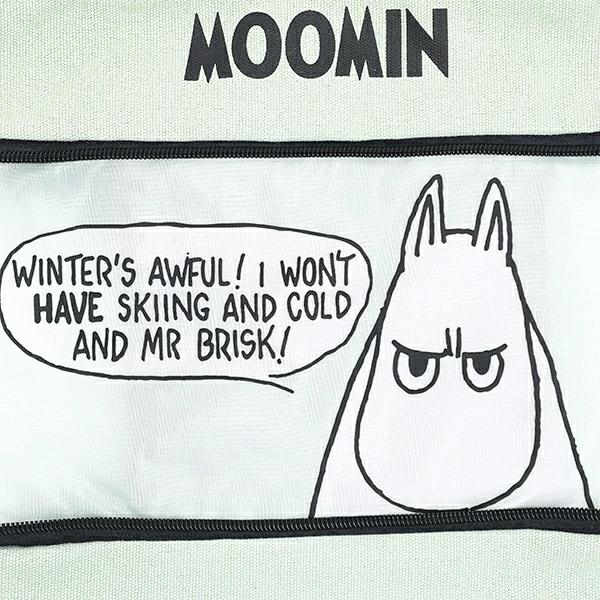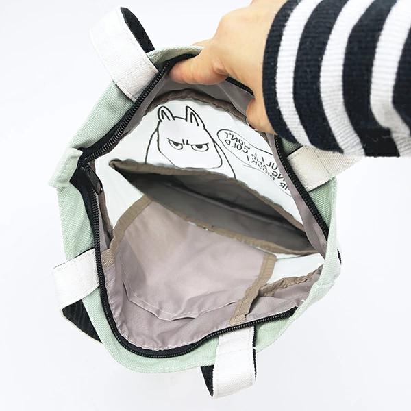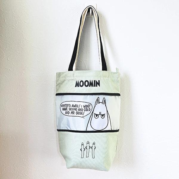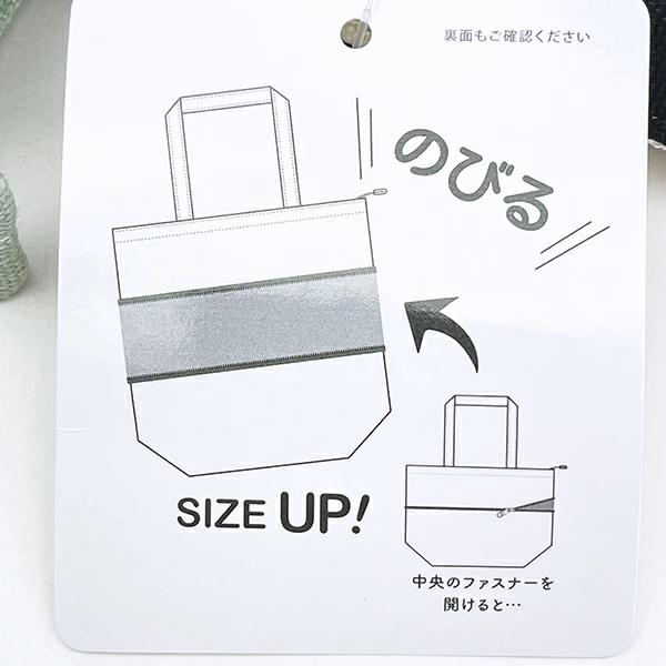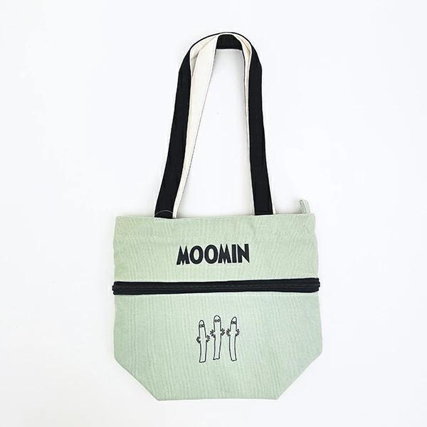 トートバッグです。中央のファスナーを開けると、トートバッグのサイズアップ!何とも言えないムーミンの顔が出てきます♪(約+13センチ) マチサイズも大きめで普段使い時にとっても便利♪ (サイズ表記は伸ばしたサイズです)小・大サイズ違いがあるので使い分けて使いたいですね☆彡