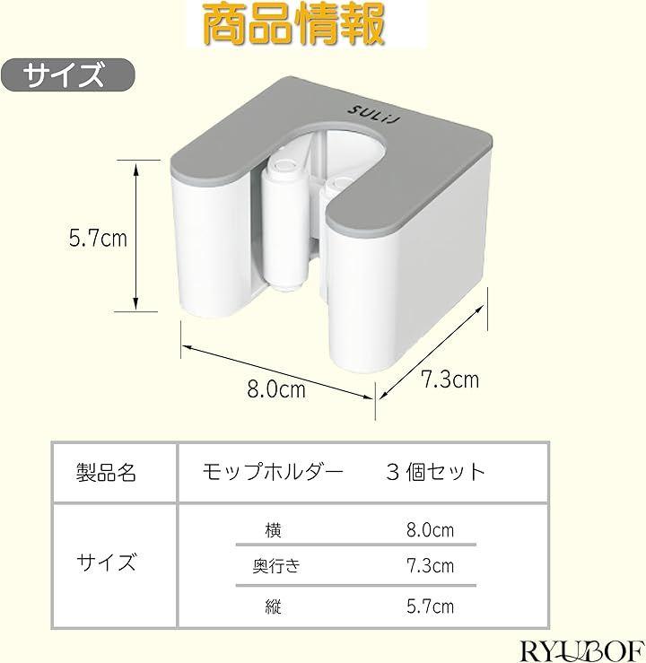 「壁掛けでしっかり固定・安心設計」三点式クリップ構造が濡れたモップ(約3キロ)でも抜群のホールド力を発揮し、シリコン素材で掃除道具を保護しつつモップ整理や道具の傷みも軽減します。