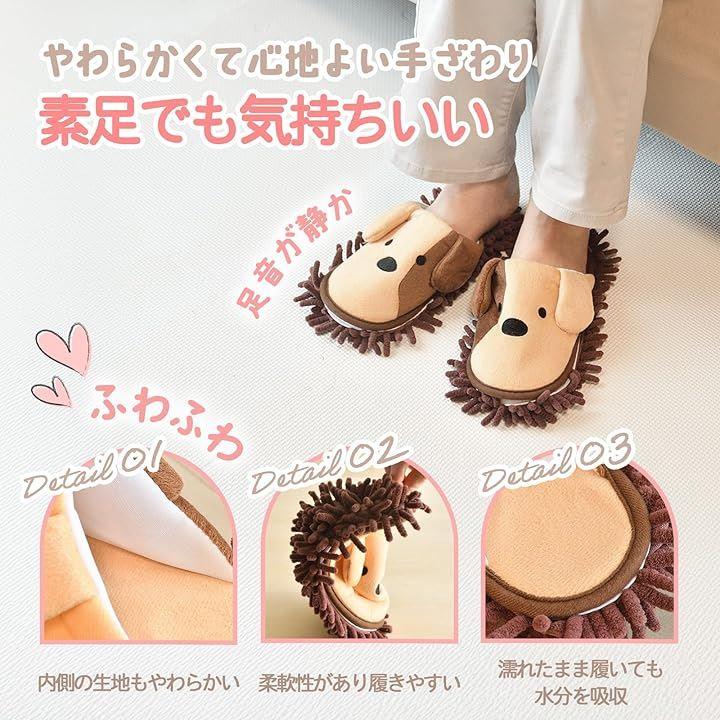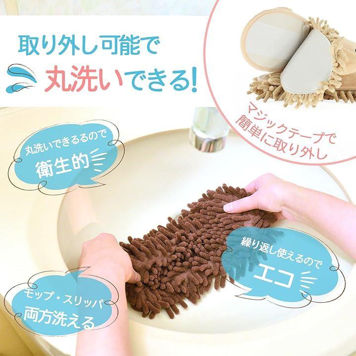 適応サイズ目安:24cm ~ 25.5cm 商品重量:約85g(片足) 素材:ポリエステル繊維 スリッパ部分とモップ部分どちらも手洗いOK *注意* 階段での使用はしないでください。
