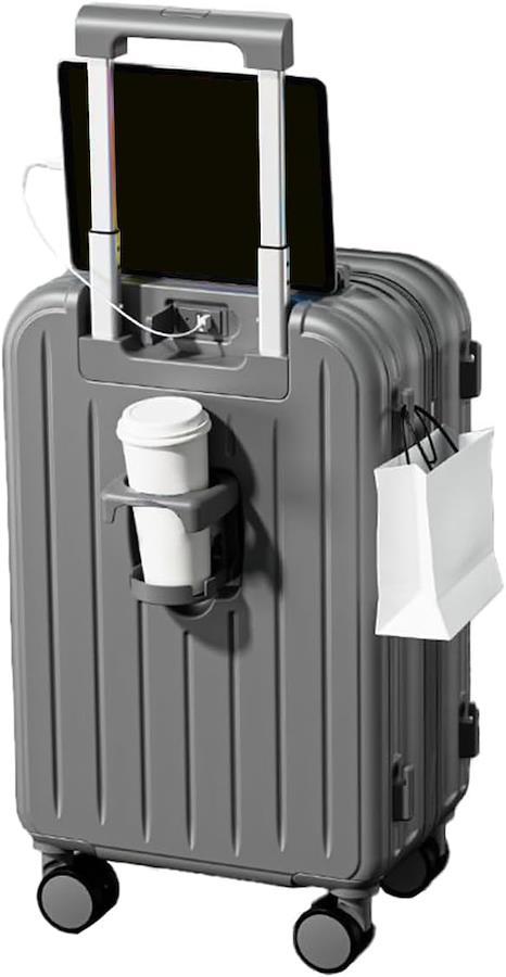 ■商品名[MORGEN SKY] スーツケース キャリーケース コロコロバック USBポート付き 充電口 ビルトインカップホルダー ビジネス 機内持込 1/2/3泊 超軽量 大型 静音 ダブルキャスター 耐衝撃 360度回転 旅行 出張 XL913 (40L-機内持ち込み%カンマ% グレー)