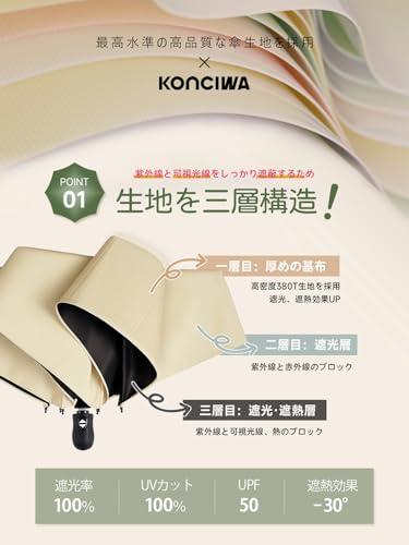 【 5秒でたためる傘】形状記憶 日傘 UVカット率 100% 晴雨兼用【形状記憶加工】折りたたみ傘の畳みにくい難点を解消するために開発した「MFU」シリーズがついに登場しました!形状安定加工により、5秒でたためる日傘。また、収納時にはかさばらず、綺麗にまとめることができます。一般的な形状安定傘は、傘地にシートを貼り付けて作るため、重さが気になったり、使用している中で剥がれてきたり、骨に負担がかかったりする問題点があります。一方でkonciwaの形状安定傘は特殊な熱加工により「生地そのもの」に折り目をつける加工を施しているため、軽さはそのままで半永久的に効果が持続します。たたむ動作が簡単になるので、これまで苦手意識のあった方も使う煩わしさが軽減されます。【コンパクト、軽量、頑丈】konciwaの折りたたみ傘は、最先端の軽量で丈夫なグラスファイバーとアルミ合金の骨組みを採用し、軽量性、コンパクトさ、頑丈さを実現! 開いた状態の直径は90cm、収納時の厚さは僅か4cm、超薄型でポケットに収納できる超コンパクト設計! さらに、約220gの重さは非常に軽く、毎日の持ち運びに最適! 通勤・通学、旅行、ハイキング、スポーツなど、あらゆるシーンで幅広く利用でき、老若男女問わず幅広い世代の方々にご利用いただけます!【完全遮光&日焼け止め】高密度傘生地と厚い黒ノリコーティングを採用して、UPF50+、UVカット率100%、完全遮光、効果的に日焼け止めすることができます。真夏の強い日差しを遮り、紫外線からしっかり肌を守り、日焼け防止、熱い日差しの中でも涼しく過ごせます。【晴雨兼用&超撥水性】最新型380 T防水織物生地を採用し、特別な加工により、出色の撥水性能を実現しました。使用後に軽く振るだけで傘が乾きます。また、内側は多層コーティング処理が施されており、紫外線を効果的にカットしますので、日よけとしてもご利用いただけます。【安心保証】konciwaの品質保証:到着後に初期不良があった場合/通常の方法で使用した製品が到着後3ヶ月以内に故障した場合には製品を無償で交換致します。手続きに関してはお問い合わせください。使う人に優しい快適性・高度な安全性・優れた耐久性を追求し続きます。誕生日、記念日、母の日、父の日、敬老の日、お祝い、入学、卒業、バレンタイン、ホワイトデーなどのプレゼントに送れば、類い希なる貴方のセンスをアピールできます。原産国 中国(#lf)(#lf)(#lf)商品購入前に、ストア紹介ページをご確認ください。