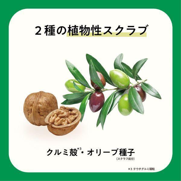 【成分】石ケン素地、水、乳酸、リンゴ酸、クエン酸、グルコノバクター/ハチミツ発酵液、テウチグルミ殻粒、オリーブ種子、ラベンダー花エキス、カミツレ花エキス、ローズマリー葉エキス、ティーツリー葉エキス、チャ葉エキス、シラカンバ樹液、イヌリン、グルコース、シリカ、コカミドプロピルベタイン、グルタミン酸ジ酢酸4Na、エチドロン酸4Na、ポリグリセリル-4ラウリルエーテル、塩化Na、EDTA-4Na、PEG-90M、酸化クロム、酸化鉄、フェノキシエタノール、BG、香料