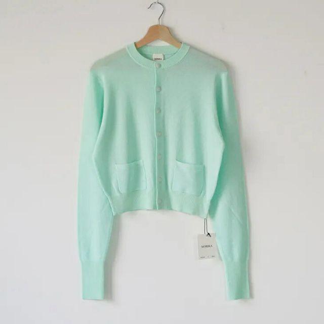 シルクのような光沢と肌触りが魅力のカーディガン。