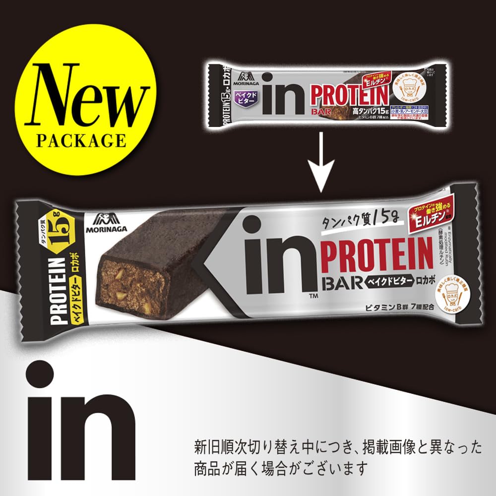 【いつでもどこでもタンパク質チャージ】「inバー プロテイン」シリーズはおいしく手軽におやつ感覚でタンパク質を補給できる、バータイプの栄養補助食品です。プロテイン=タンパク質:タンパク質は、体のあらゆる部分のもとになる大切な栄養素。「inバー プロテイン ベイクドビター」は1本でタンパク質15g、さらにタンパク質の働きに必要なビタミンB群(7種)を配合。さらに、プロテインの働きを強めることで森永製菓が特許を取得している成分、「Eルチン(酵素処理ルチン)」を配合。焼きチョコタイプで手で溶けにくい「ベイクドチョコ」と比べて「ベイクドビター」は糖質が半分以下で運動の合間だけでなく毎日の習慣にぴったりの品質です。1本あたり糖質4.4gでロカボを実現。糖質コントロールにも適しています。15本入りパッケージでお届けします。 特徴: 【いつでもどこでもタンパク質チャージ】 1本でタンパク質(プロテイン)15gが摂取できる、栄養調整食品。手で溶けない焼きチョコバータイプでロカボ(「ベイクドチョコ」比で糖質約半分)。15本入りパッケージ。 プロテイン種類: ホエイプロテイン・ソイプロテイン・カゼインプロテイン (Whey protein, Soy protein, Casein protein bar) たんぱく質量: 1本当たり 16.2g カロリー: 1本当たり 212kcal 糖質: 1本当たり 4.4g 内容量: 15本 (15本入×1箱) 原材料に含まれるアレルギー物質(28品目中): 乳・アーモンド・大豆