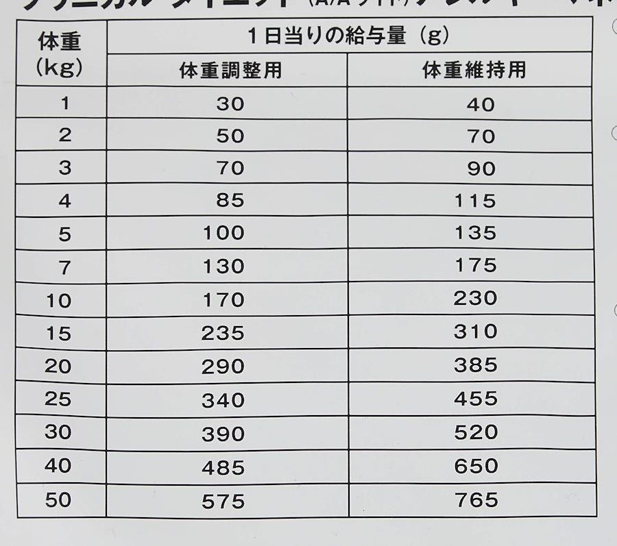 1. 給与回数:給与回数は1日2~3回か?一般的て?す。なお、給与量は気温、運動量、犬種なと?により異なります。 2. 体重調整(減量)を実施する場合 3. ※実施前に獣医師にこ?相談くた?さい。 ※目標の体重に達したら、獣医師の指導のもと体重維持用の給与量に変えてくた?さい。 ※減量のためにはカロリー摂取量を制限するとともに、規則的に運動させることか?大切て?す。 4. いつて?も新鮮な水か?飲めるようにこ?用意くた?さい。