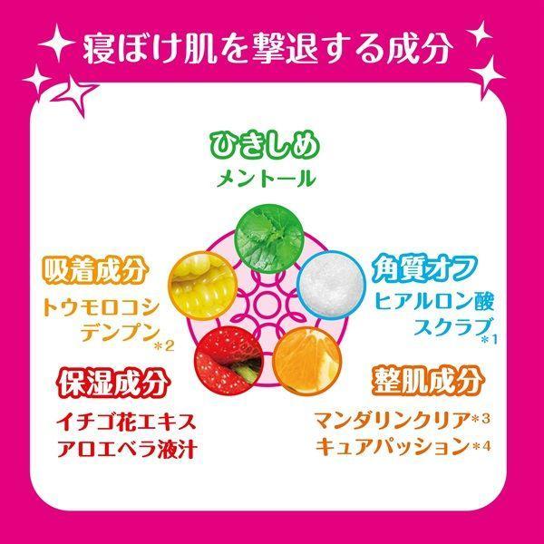 メントールの冷感効果で朝の寝ぼけ肌を撃退!キュッとお肌をひきしめる。●朝の憂鬱な毛穴汚れ・くすみを洗い流す!●ヒアルロン酸スクラブで古い角質を洗い流してくすみをオフ!●メントールの冷感効果でお肌をひきしめてメイクヨレを防ぐ!●パウダー配合で余分な皮脂を吸着してメイクをキープ!●寝ぼけ肌にアプローチ。・ひきしめ:メントール・吸着成分:トウモロコシでんぷん・角質オフ:ヒアルロン酸スクラブ・保湿成分:イチゴ花エキス、アロエベラ・整肌成分:マンダリンクリア、キュアパッション●気分スッキリ華やかなフローラルシトラスの香り。