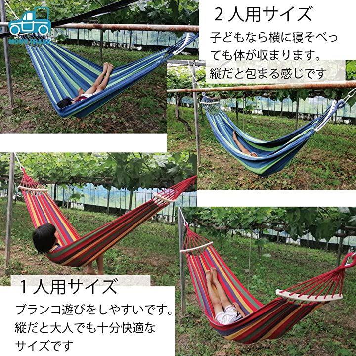 両端に木枠がついているので、ハンモックが絡まりにくく、扱いやすいタイプになります。