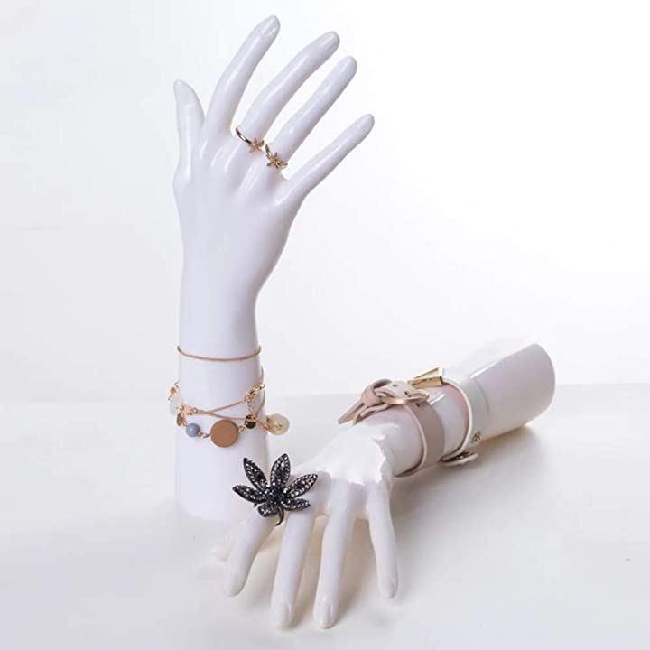 指先まで丁寧に作りこまれており、指輪やブレスレット、腕時計の展示や、デッサン模型になどにご利用いただける等身大トルソーです。