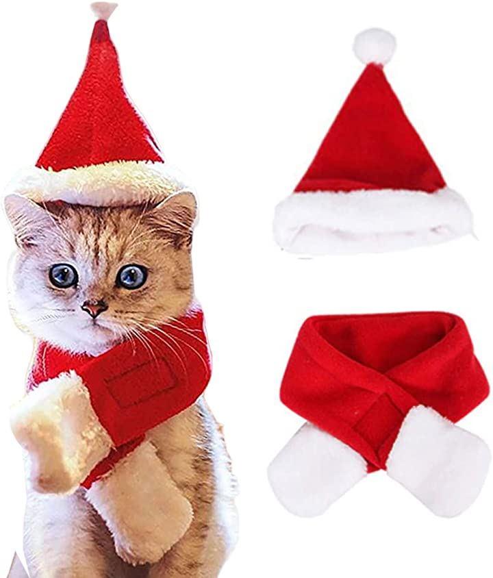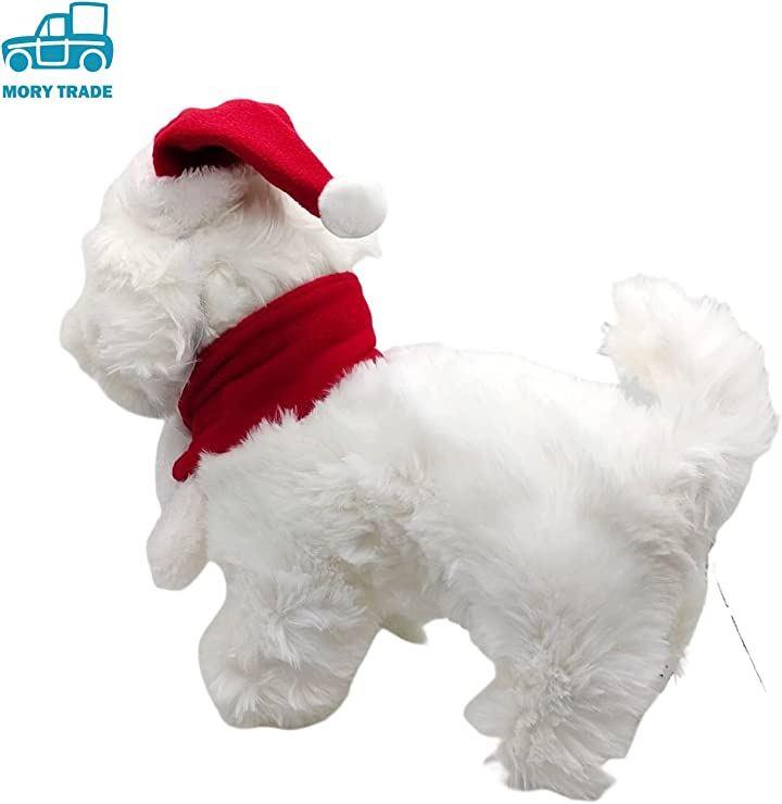 サンタクロースの帽子とマフラーをイメージした可愛いコスチュームでクリスマスを盛り上げる、楽しいペットコスプレです。