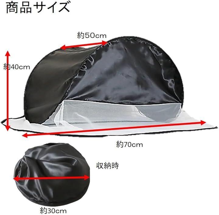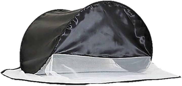 「スリーピングドーム」日中は日が入ってくるので室内、屋外どちらも寝ずらい事が多いですがスリーピングドームは高い遮光性があるので昼夜室内屋外どの状況でも深い眠りをサポートしてくれます