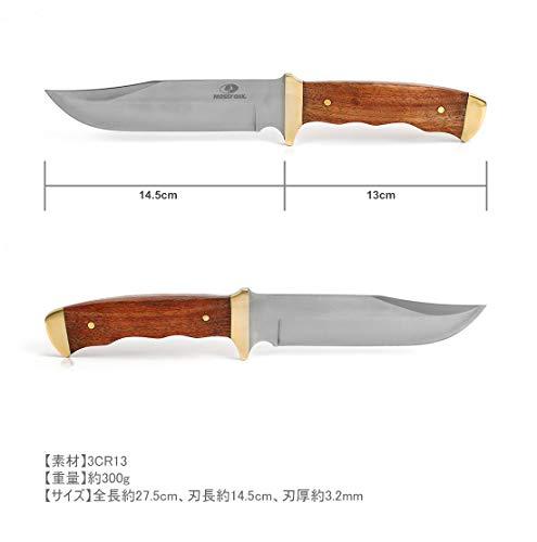 全長: 27.5cm、刃体長さ:14.5cm、素材:ステンレス鋼を採用して、耐久性が良い。重量:300g【フルタング構造】ブレードを挟み込んだ堅牢なフルタング構造で、サイズの割りに重量バランスはニュートラルなので、握りやすく、力を入れやすいです。?グリップ材質は天然ウッド材で手に優しくて、高級感があります。【ケース付き】専用収納シースが付いて、ケースの背部にクリップが付いています。ベルトに付けられて、携帯しやすいです。【適用場所】洗練なデザインで、コレクションだけではなく、DIYなども幅広く対応した一品です。※当商品はバトニングにはお勧めしません。※正当な理由なくこの商品を携帯することは法令により禁止されております。? ※18歳未満の方はこの商品を購入しないようお願いします。ご注意:お届けの商品に何か問題がございましたら、いつてもご連絡ください。すぐに対応させて頂きます。弊社は、お客様のご満足を心がけて参ります。