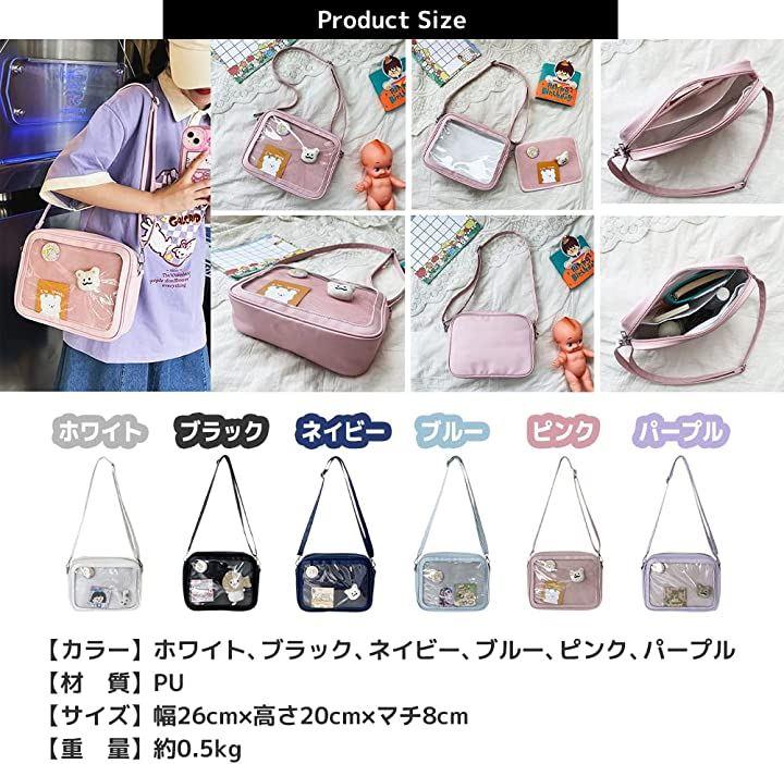 ・「カラー」ホワイト、ブラック、ネイビー、ブルー、ピンク、パープル「材質」PU「サイズ」幅26cmx高さ20cmxマチ8cm「重量」約0.5kg