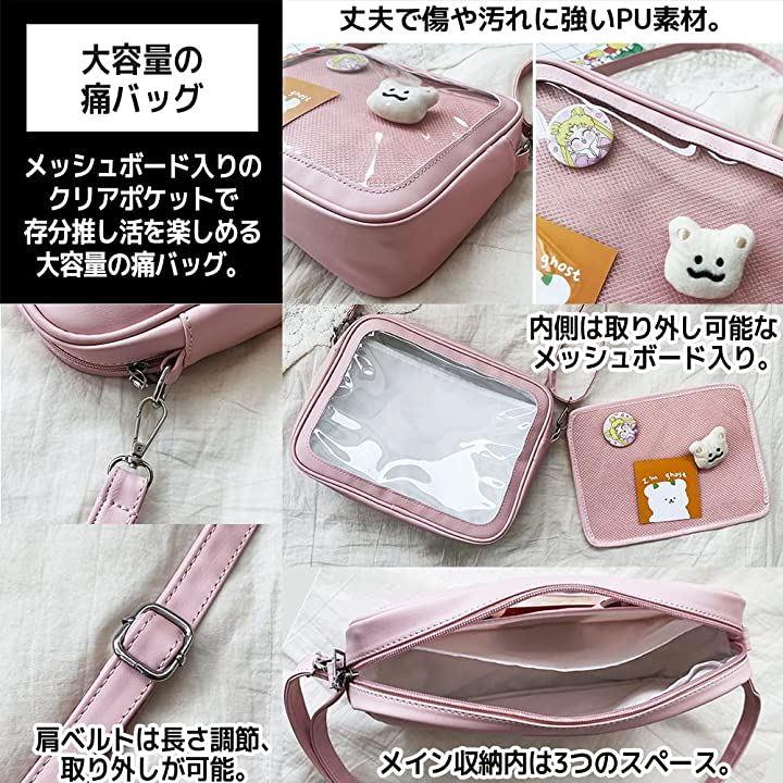 片面がクリアポケットになっており、推しグッズを入れて思う存分推し活を楽しめる大容量の痛バッグです。