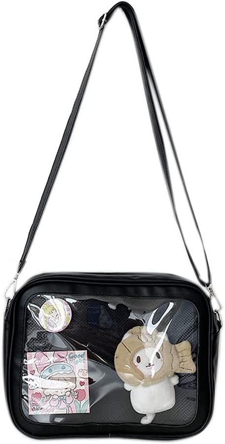 片面がクリアポケットになっており、推しグッズを入れて思う存分推し活を楽しめる大容量の痛バッグです。