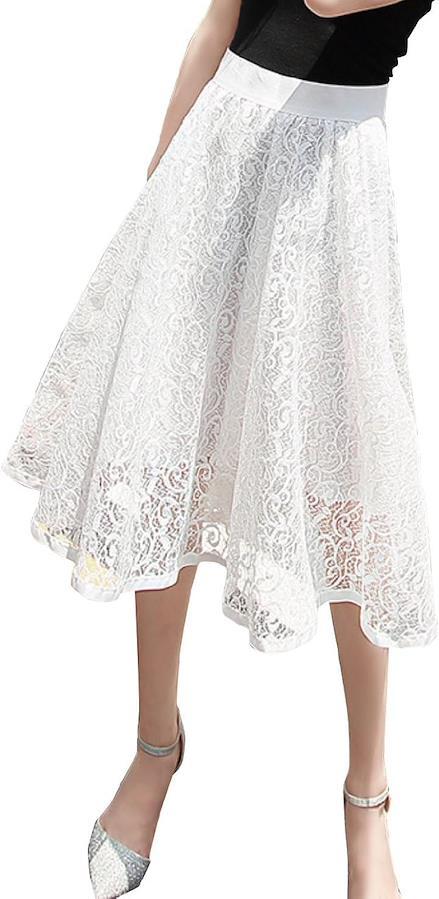 女神的透かし彫りレースがポイントの、上品ミモレ丈スカート* 短すぎない絶妙なインナーと透け感のあるレーススカートは軽やかな春の装いにもぴったり。 イイ女度鉄板の愛されアイテムです。