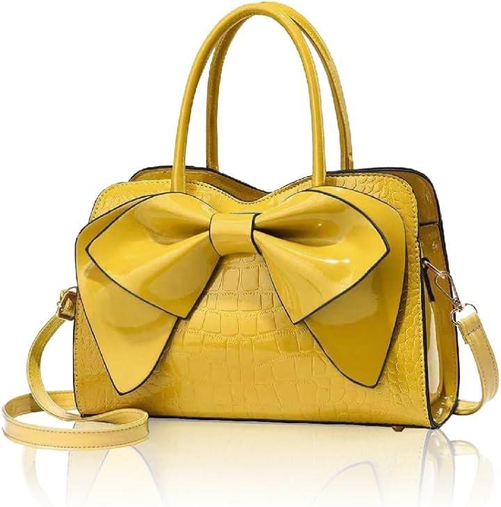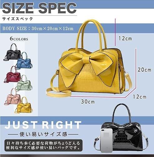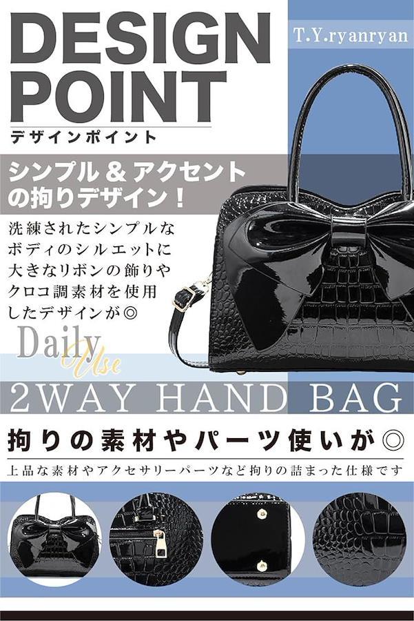 「デザイン性・実用性抜群のハンドバッグ」前面の大きな蝶結びとクロコ調が特徴のハンドバッグが登場。艶のある素材で高級感を演出、付属のショルダーベルトにて斜めがけスタイルにも変更可能、便利な2wayハンドバッグです。