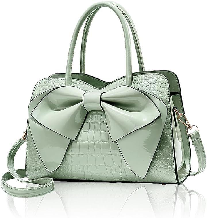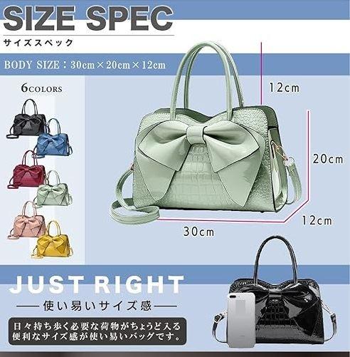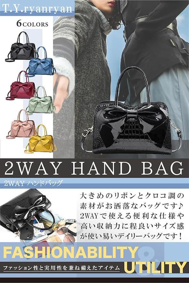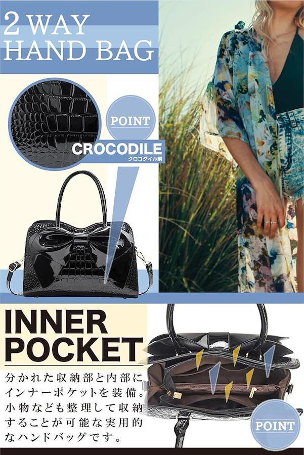 「デザイン性・実用性抜群のハンドバッグ」前面の大きな蝶結びとクロコ調が特徴のハンドバッグが登場。艶のある素材で高級感を演出、付属のショルダーベルトにて斜めがけスタイルにも変更可能、便利な2wayハンドバッグです。