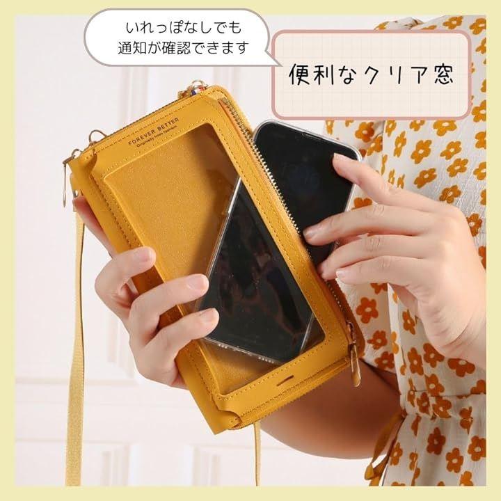 「メイン素材」PUレザー 「サイズ」全体:約20cmx12cmx3cm クリア部分:約8cmx16cm 「重さ」約120g 「スマホをいれたまま操作可能」 タッチパネル対応でスマートフォンを取り出さずに操作が可能。