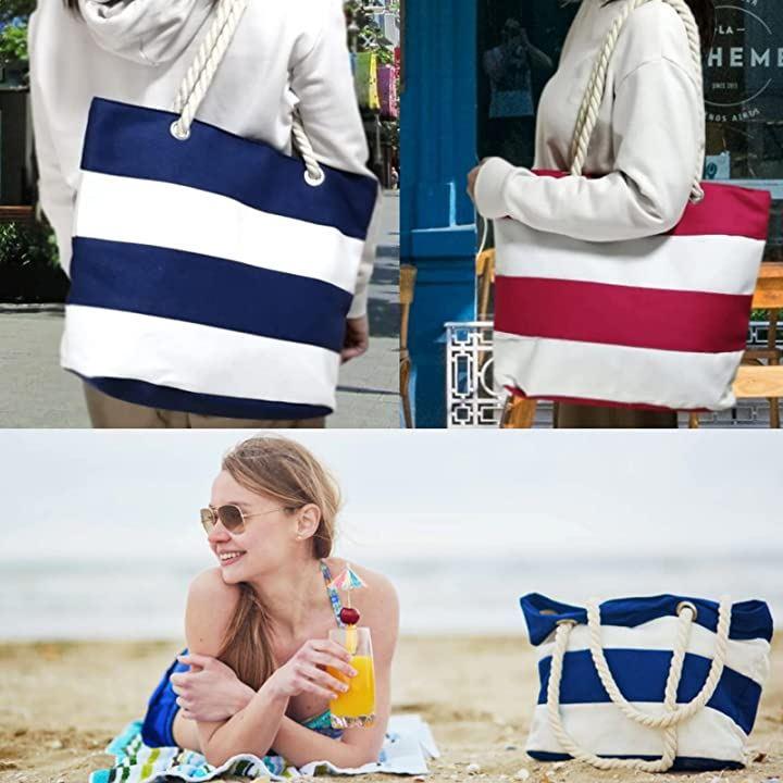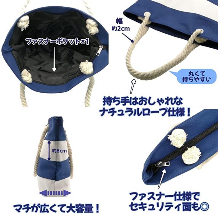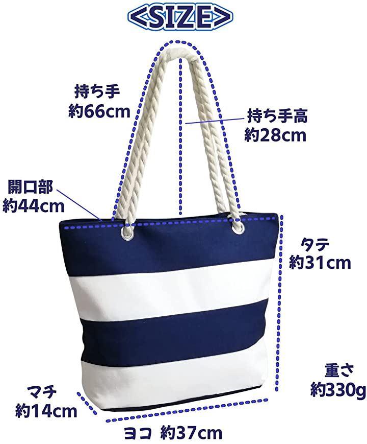 ・マリンテイストのトートバッグはマチもしっかりあるから見た目以上に大容量。 普段使いからリゾートシーンまで幅広く大活躍するアイテムです。