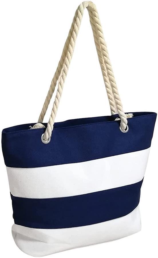 マリンテイストのトートバッグはマチもしっかりあるから見た目以上に大容量。普段使いからリゾートシーンまで幅広く大活躍するアイテムです。