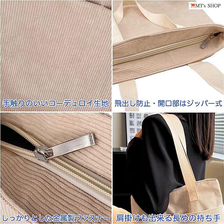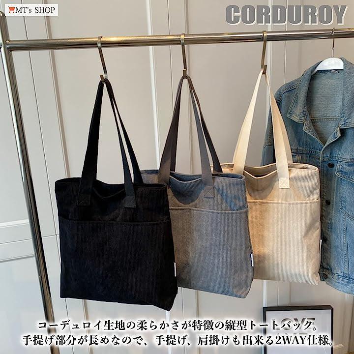 コーデュロイ生地の柔らかさが特徴で、程よいヴィンテージ感のある、縦長でたっぷり入る大容量タイプのレディース向け縦型トートバックです。