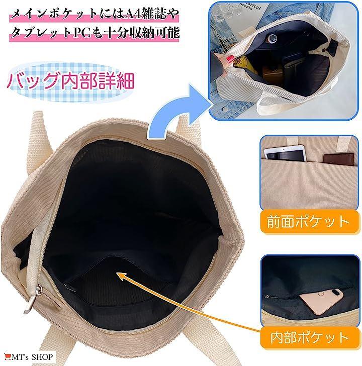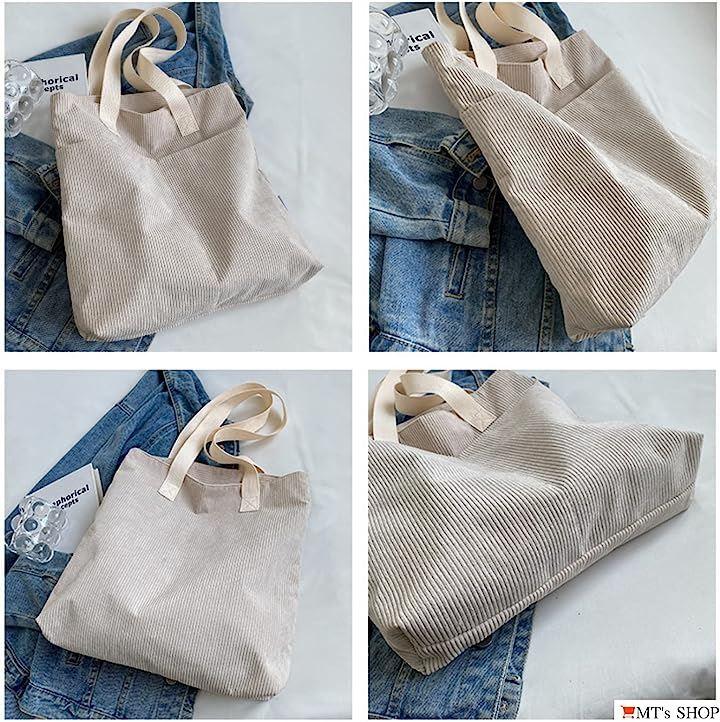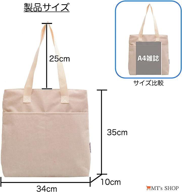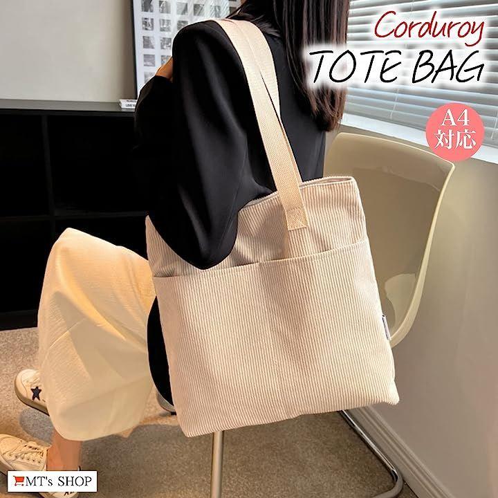コーデュロイ生地の柔らかさが特徴で、程よいヴィンテージ感のある、縦長でたっぷり入る大容量タイプのレディース向け縦型トートバックです。