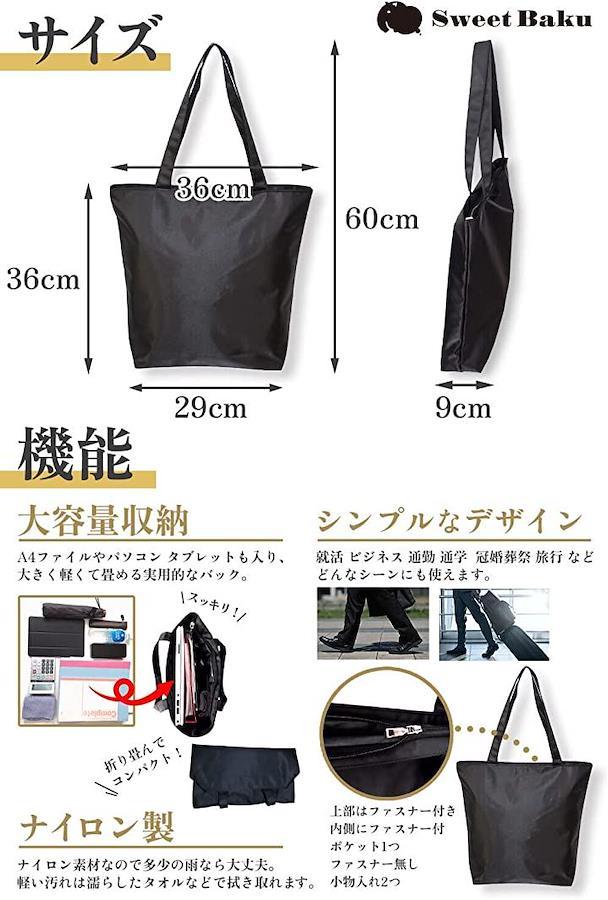 ・A4ファイルやパソコン タブレットも入り、大きく軽くて畳める実用的なサブバッグです。