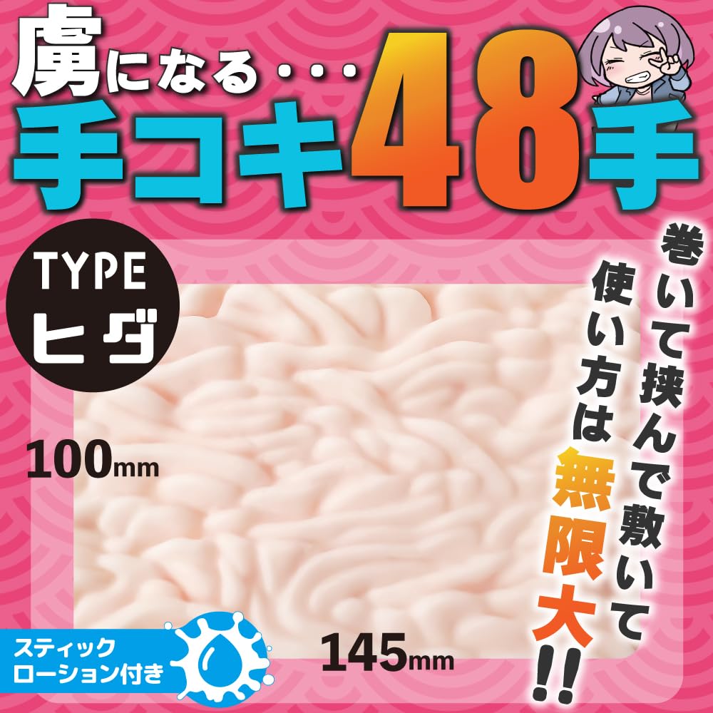 巻いて挟んで敷いて…使い方は無限大!自在に自分好みの快感を作り出せる「おなまっと」ヒダタイプ。 使い方の発想次第で無限の楽しみ方が出来る「おなまっと」。 ヒダタイプは縦横無尽にウネウネと張り巡らされたヒダが予測不能の快感を生み出します。 様々な方向に流れるヒダがどんな角度でも引っかかるので、方向を気にせず撫でまわすだけでも強い快感を得られます。 巻き付けるだけでなく、先端を包んだり色々な部位をマッサージしたりと、工夫次第で様々な使い方が可能。 とても洗いやすいので、使用後の後処理も楽ちんです。 縦100mm・横145mm・厚さ約8mm パウチローション付き