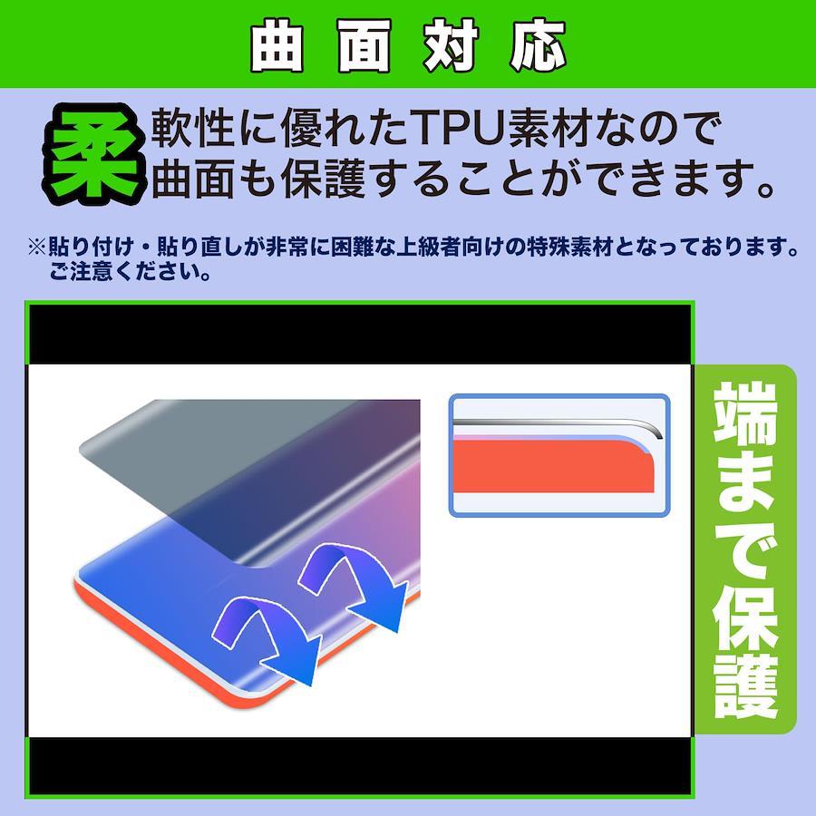 デバイスのエッジ部分を含む曲面全体にフィットできる特殊素材。TPU素材を使用しているため、通常のガラスフィルムでは対応が難しい曲面部分も貼ることが可能です。